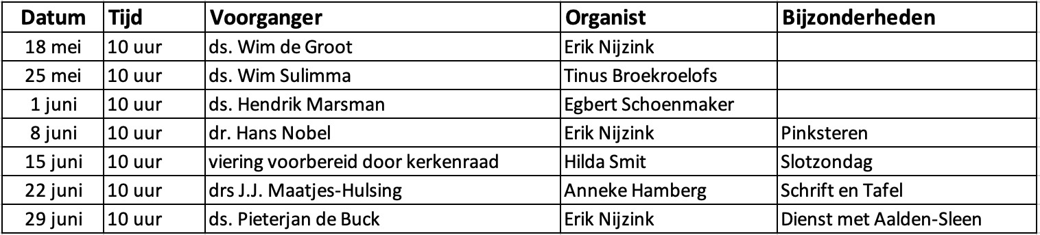 Alle diensten beginnen om 10:00 uur, tenzij anders vermeld.